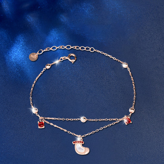 925 Silver Christmas Stocking Bracelet with Rose Gold Plating Forest Style Travel Jewelry Rhodium Plated