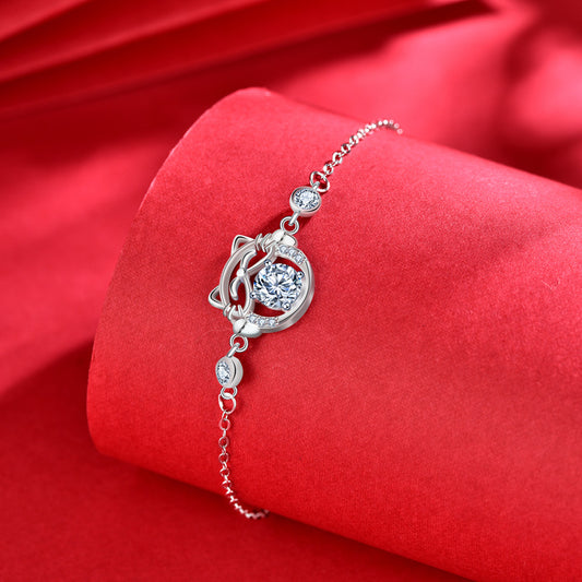 925 Silver Lucky Cat Bracelet with 0.5ct Moissanite Travel Jewelry Rhodium Plated