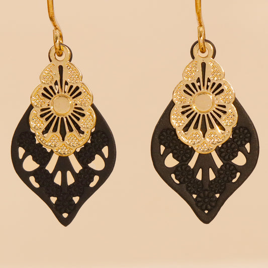 Trendy Black Copper Flower-Shaped Earrings, Eco-Friendly