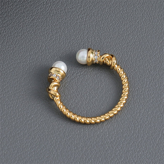 Vintage-inspired Adjustable Geometric Ring - Gold Plated Brass with Glass Bead Accent