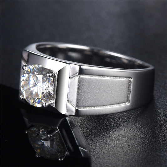 1CT D Color Moissanite Men's Ring – 925 Sterling Silver Wide Band Engagement Ring for Men