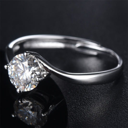 1CT Moissanite Adjustable Ring - 925 Sterling Silver Four-Prong Solitaire Engagement Ring