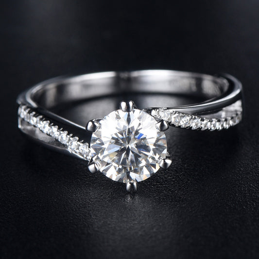 1CT D Color Moissanite Solitaire Ring - 925 Sterling Silver Six-Prong Engagement Ring with Certificate