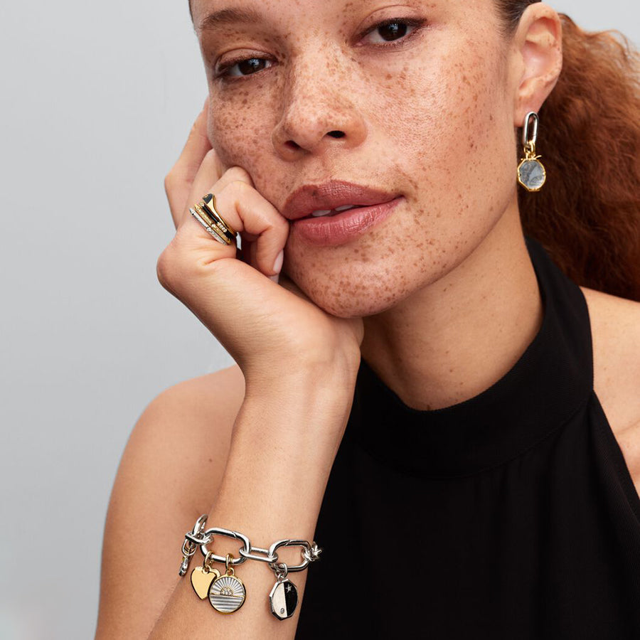 Celebrate life's beautiful transitions with our 14K gold-plated Sunrise Medallion Charm, designed to embody freedom, creativity, and fresh starts. Featuring a dazzling cubic zirconia center for brilliant sparkle and an innovative bioresin mother of pearl finish, this charm merges sustainability with luxury. The warm 14K gold plating ensures lasting radiance, while the bold sunrise motif makes it a meaningful gift for anyone embracing change. Lightweight yet eye-catching (18.2mm x 15.4mm), this piece is perfect for layering or wearing solo.