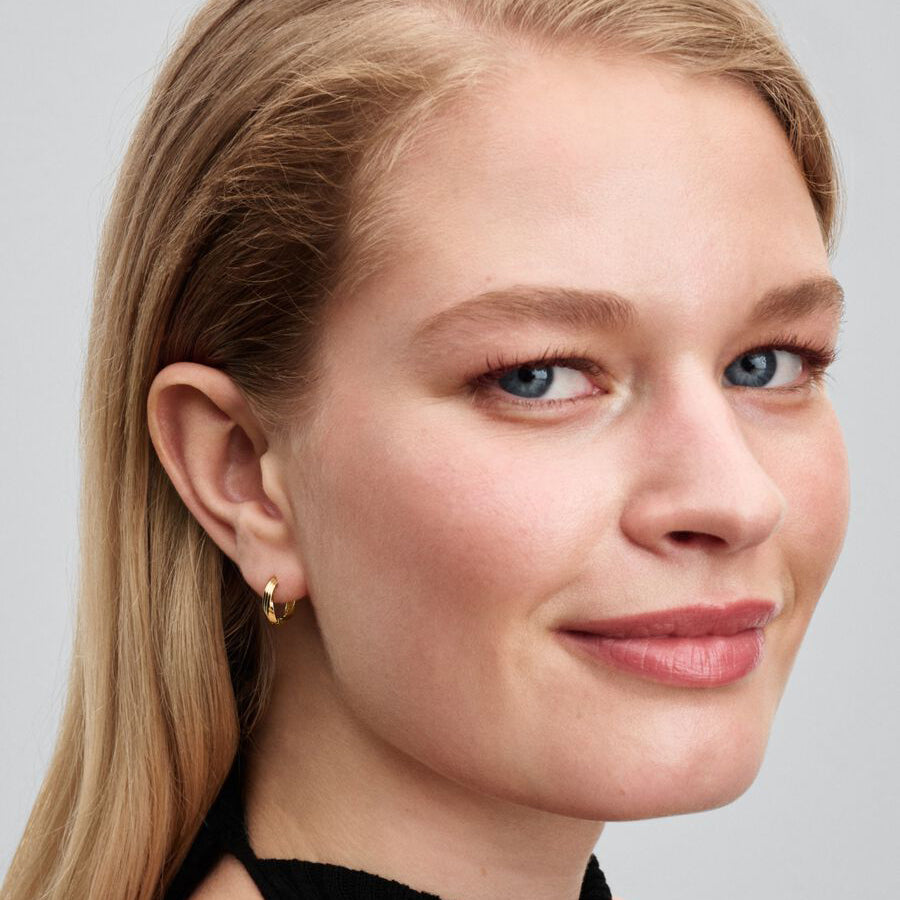 Express your unique style with these sophisticated twisted huggie earrings in luxurious 14k gold plating. The artful spiral design embodies individuality and creative freedom, adding a modern twist to classic hoop earrings. Perfectly sized at 11.8mm diameter, these comfortable huggies feature a warm golden glow from durable gold plating over a sturdy metal core. The twisted silhouette catches light beautifully for subtle sparkle, making these versatile earrings ideal for both everyday wear and special occasions. A must-have for those who appreciate jewelry that makes a quiet yet distinctive statement.