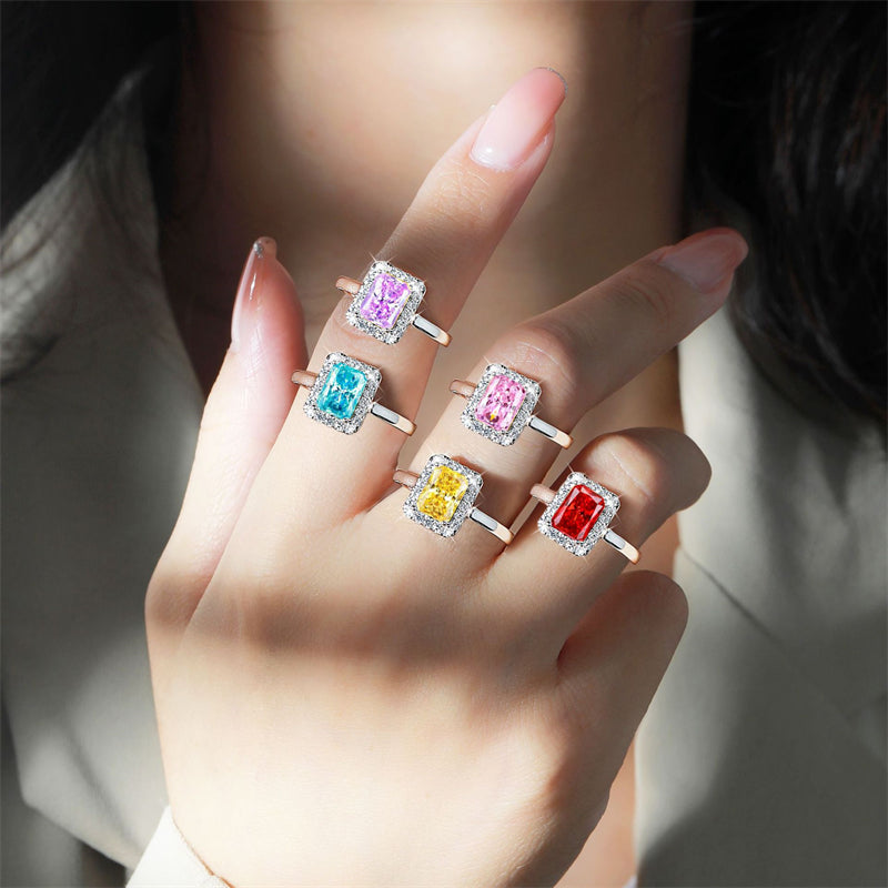 Experience European elegance with this stunning 2ct square-cut 925 sterling silver wedding ring. Featuring a brilliant 6×8mm 5A zirconia center stone surrounded by sparkling high-carbon diamonds, this geometric masterpiece is crafted from premium 3.5g rhodium-plated silver. Available in 8 sophisticated colors across US sizes 5-10. The perfect combination of modern design and timeless romance for your special day.