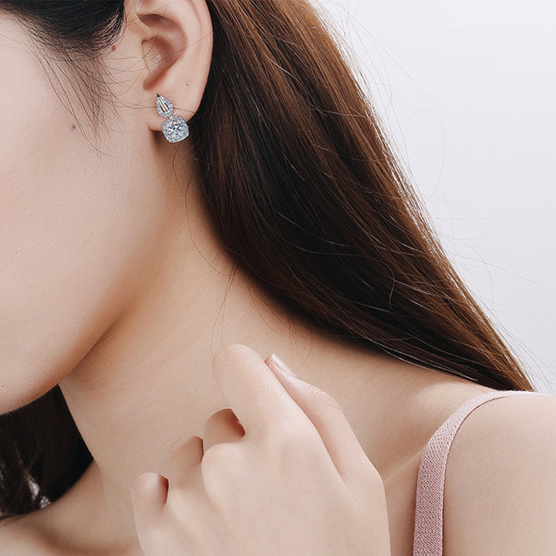 These elegant 925 sterling silver stud earrings feature a secure four-prong setting with 0.8CT moissanite per ear (1.6CT total) and sparkling 6mm zircon accents. The floral-inspired design incorporates auspicious Chinese motifs (wealth toad and prosperity guardian) in a contemporary sporty-chic style. Weighing 3.2g, these versatile earrings blend cultural symbolism with modern office-to-evening wearability.