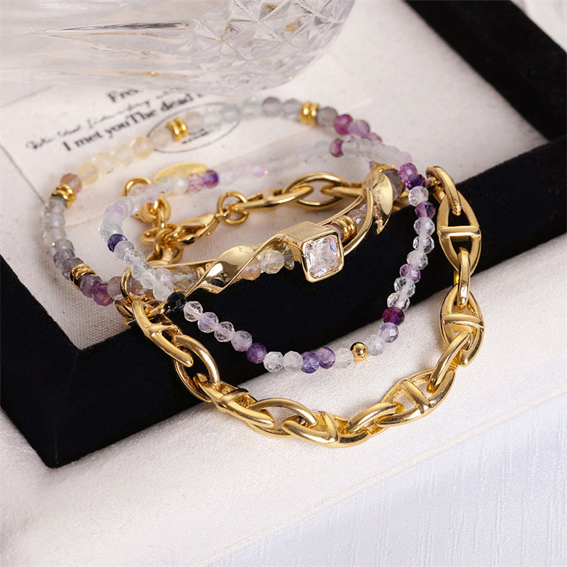The electroplated finish enhances the vintage aesthetic while ensuring durability. Each bracelet features precise square geometric patterns that create structured elegance. The collection incorporates diverse materials including zircon, fluorite, African turquoise, glass beads, freshwater pearls, and various metals.