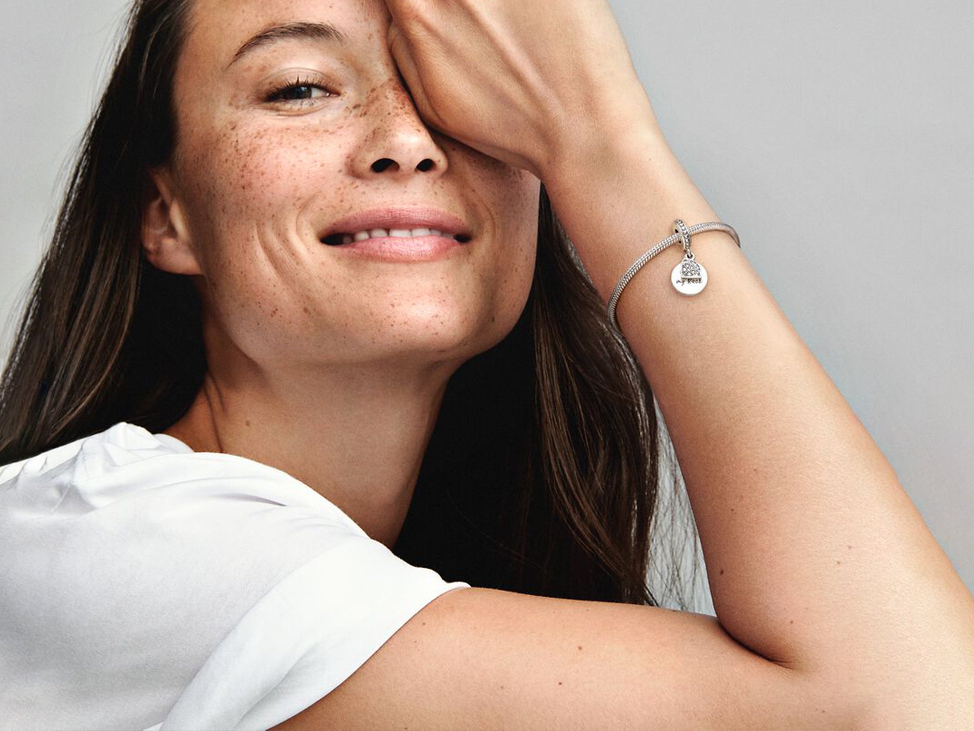 Show your appreciation for unwavering support with this 925 silver charm. The polished pendant is engraved with the words "You're my rock" and features a small diamond-shaped charm adorned with sparkling cubic zirconia. Designed to complement Pandora Moments bracelets, it also boasts a raised heart on the loop.