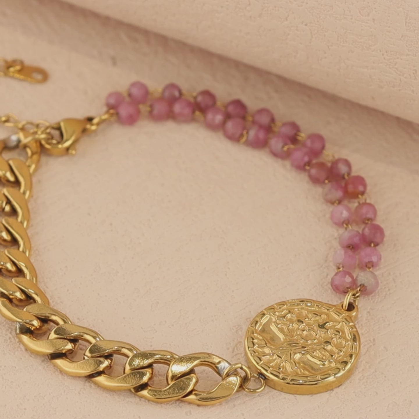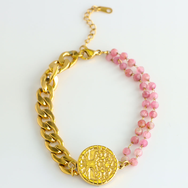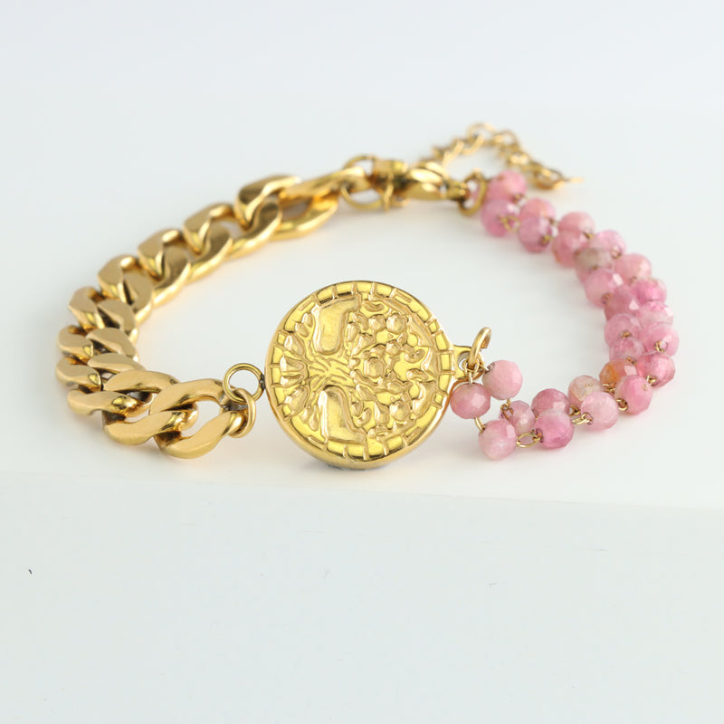 This stunning necklace features a combination of stainless steel and natural stone beads, creating a unique piece that combines symmetry with asymmetrical design. The necklace is composed of a chain with beads and a tree charm, adding a touch of nature and elegance. With a length of 20.5cm and a weight of 9.5g, this necklace is perfect for adult women looking to express their unique style. The smooth surface finish enhances the sophistication of the piece, making it ideal for both casual and formal occasions. The necklace is secured with a lobster clasp closure for easy wearing.