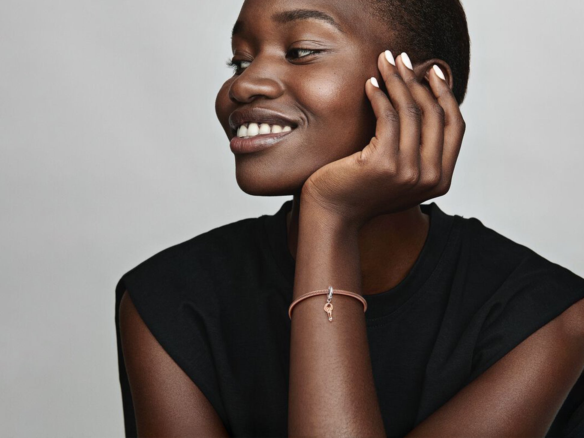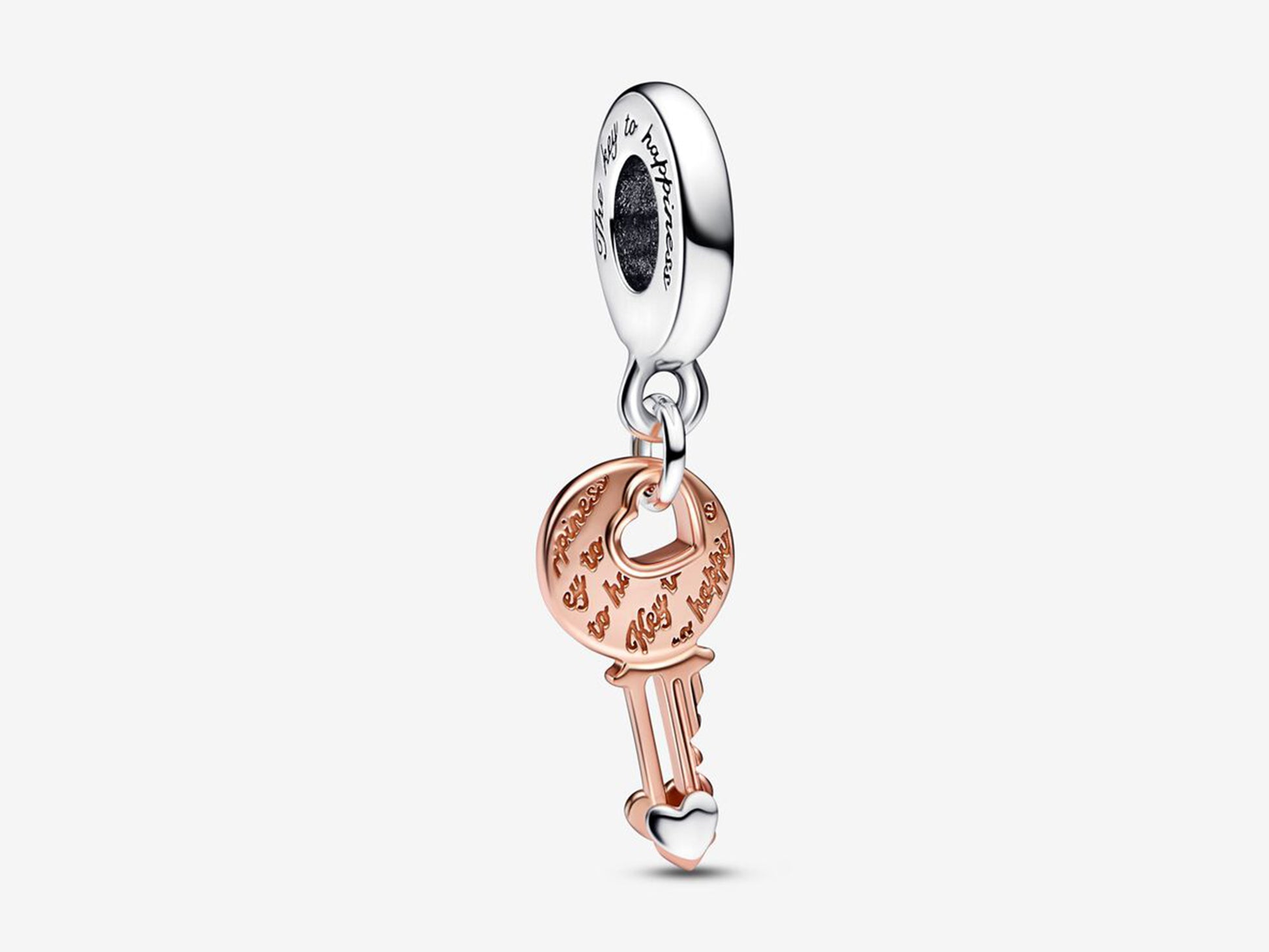 Unlock your love for yourself with our Two-tone Key & Sliding Heart Dangle Charm. The 14k rose gold-plated key features a raised sterling silver heart that slides up and down its blade detailed with realistic notches and teeth. The charm dangles from a heart-shaped cut-out on the head of the key. Engraved with the message "The key to happiness", wear yours as an empowering reminder that you make yourself happy every day.