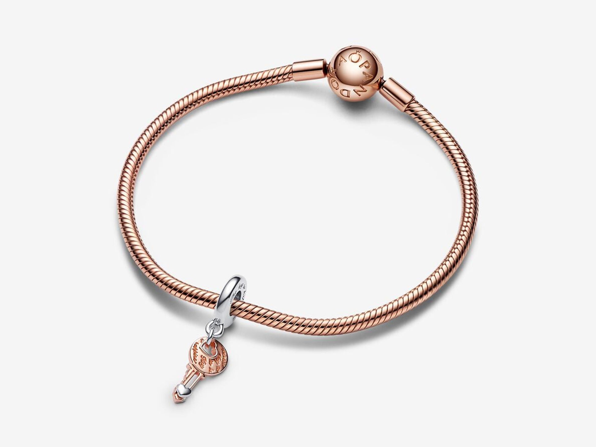 Two-tone key & Sliding Heart Dangle Charm