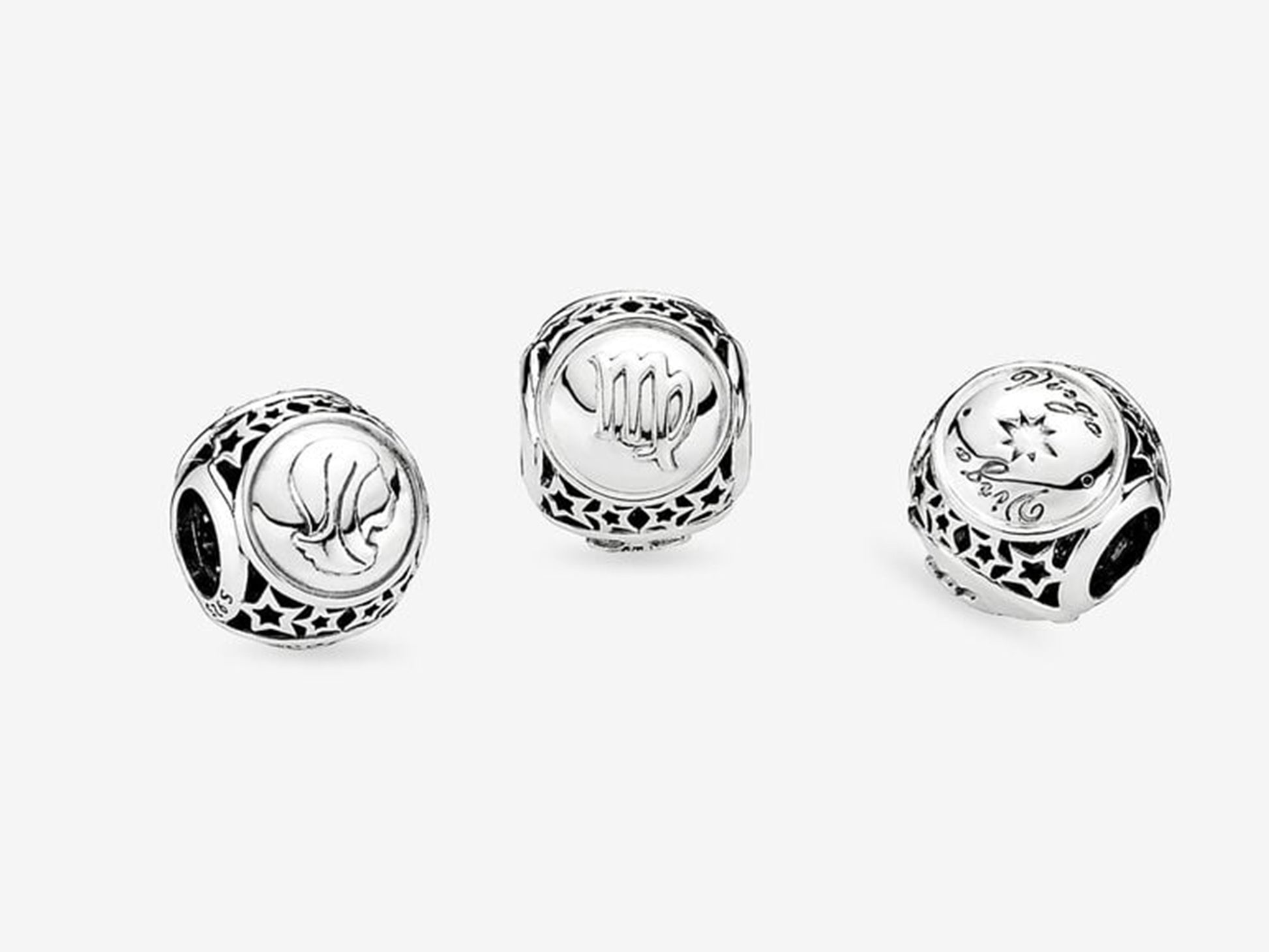 Celebrate the glory of being a Virgo with this handcrafted Zodiac Charm designed for Pandora Bracelet. Carved on the 925 silver charm, the Virgo symbol and name shine in a vintage style, surrounded by mysteriously hollowed stars. An enchanting gift for the captivating Virgo women or a proud showcase of your own star sign.