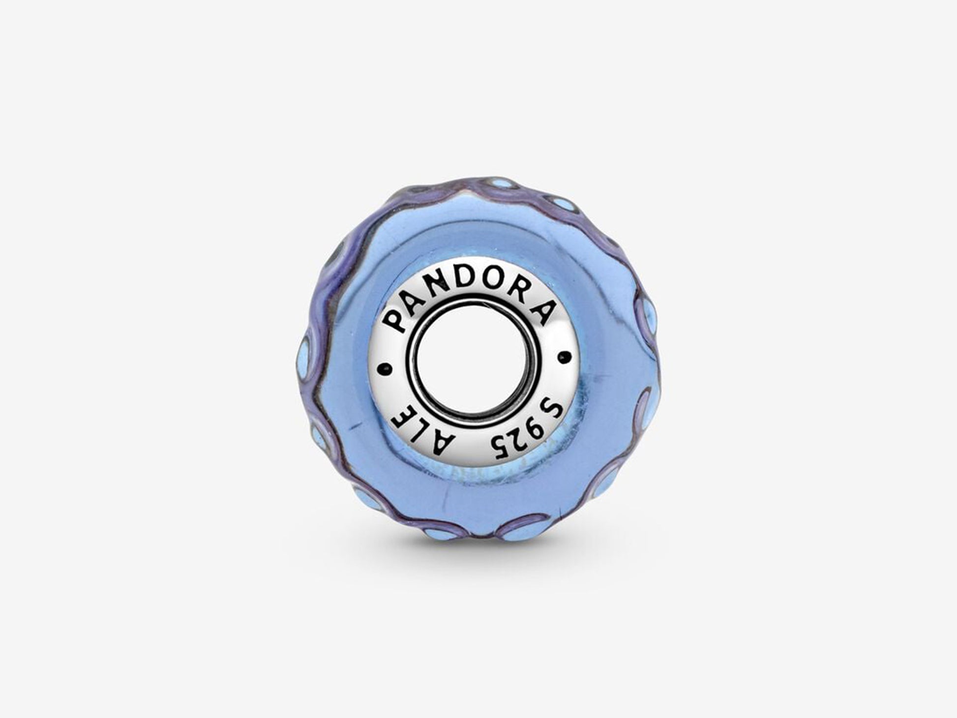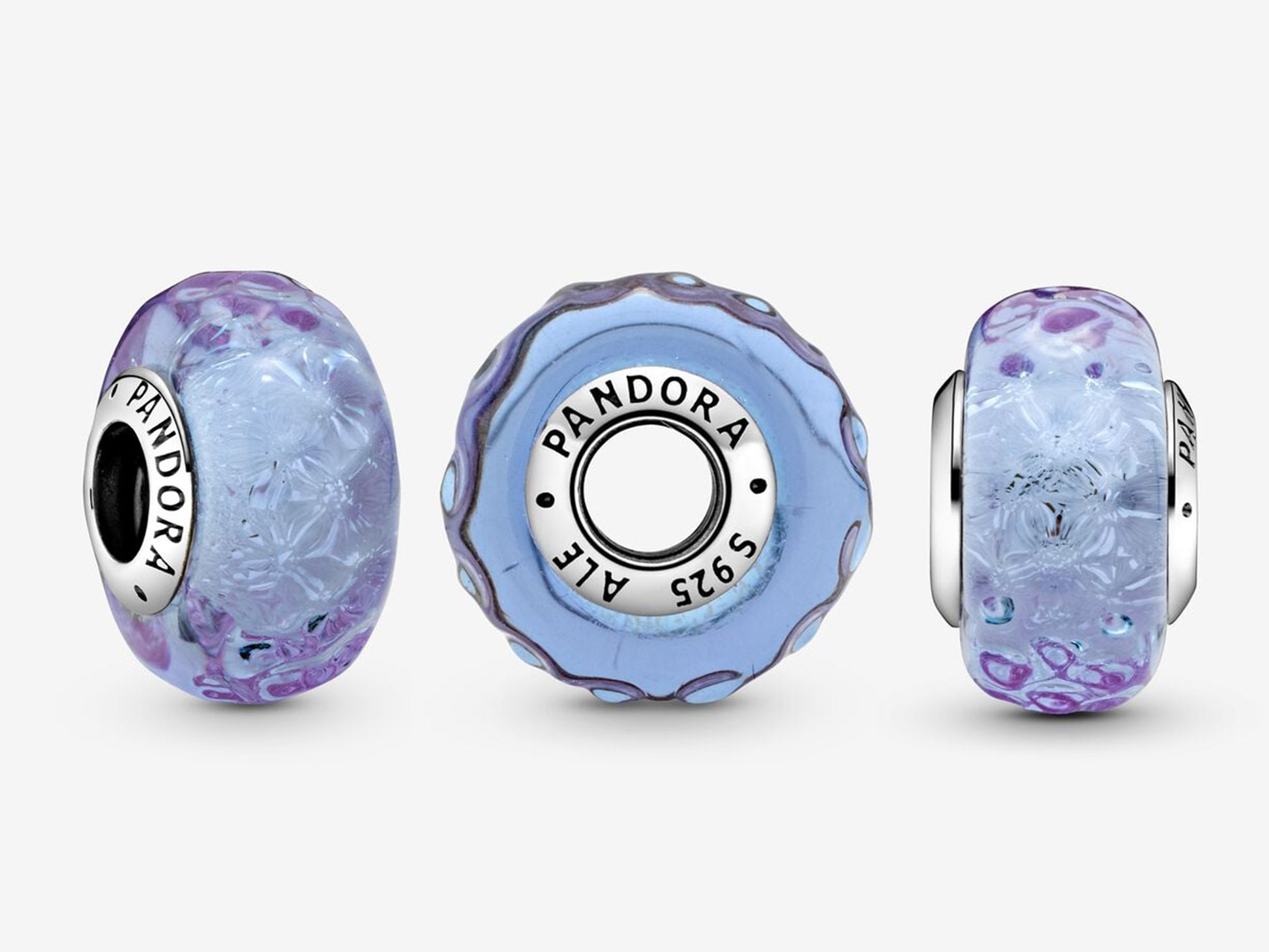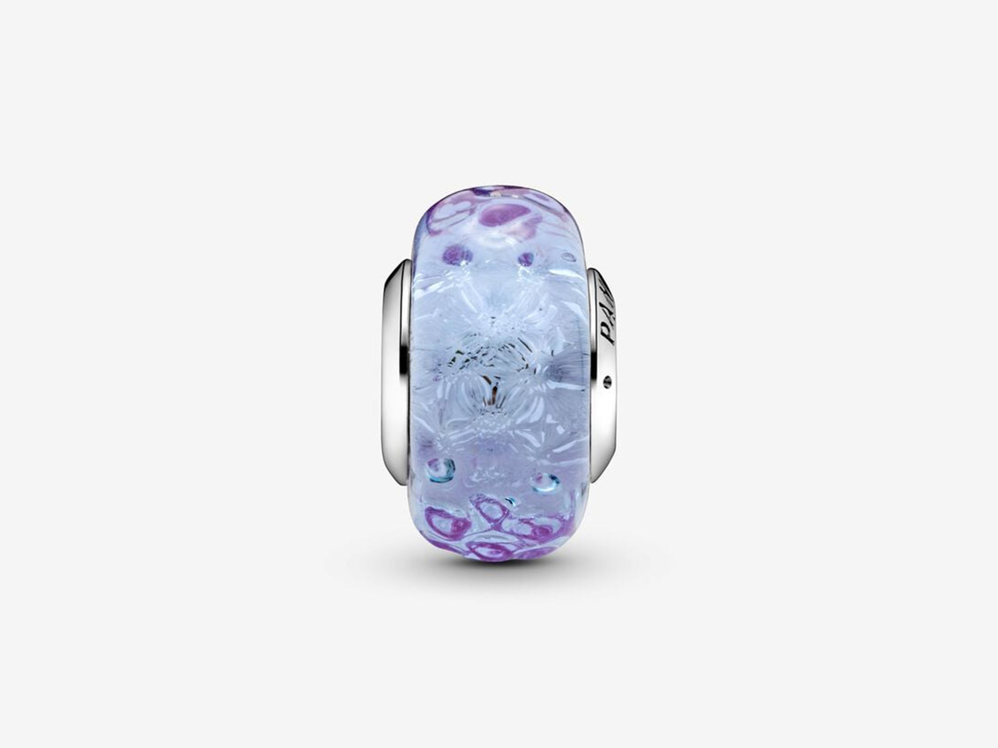 Colorful and sophisticated, the Wavy Lavender Murano Glass Charm can elevate any outfit. Transform your look from ordinary to extraordinary with this iridescent and lavender Murano glass charm filled with glitter and topped with a wavy glass surface. A touch smaller than our traditional Murano charms, this charm is the perfect complement to your style. Every Murano glass charm is hand finished and features a sterling silver core engraved with the Pandora logo.