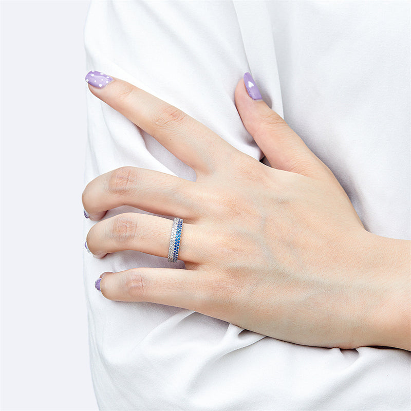 White & Blue Zircon Stackable Ring – Trendy 925 Sterling Silver Geometric Ring for Women