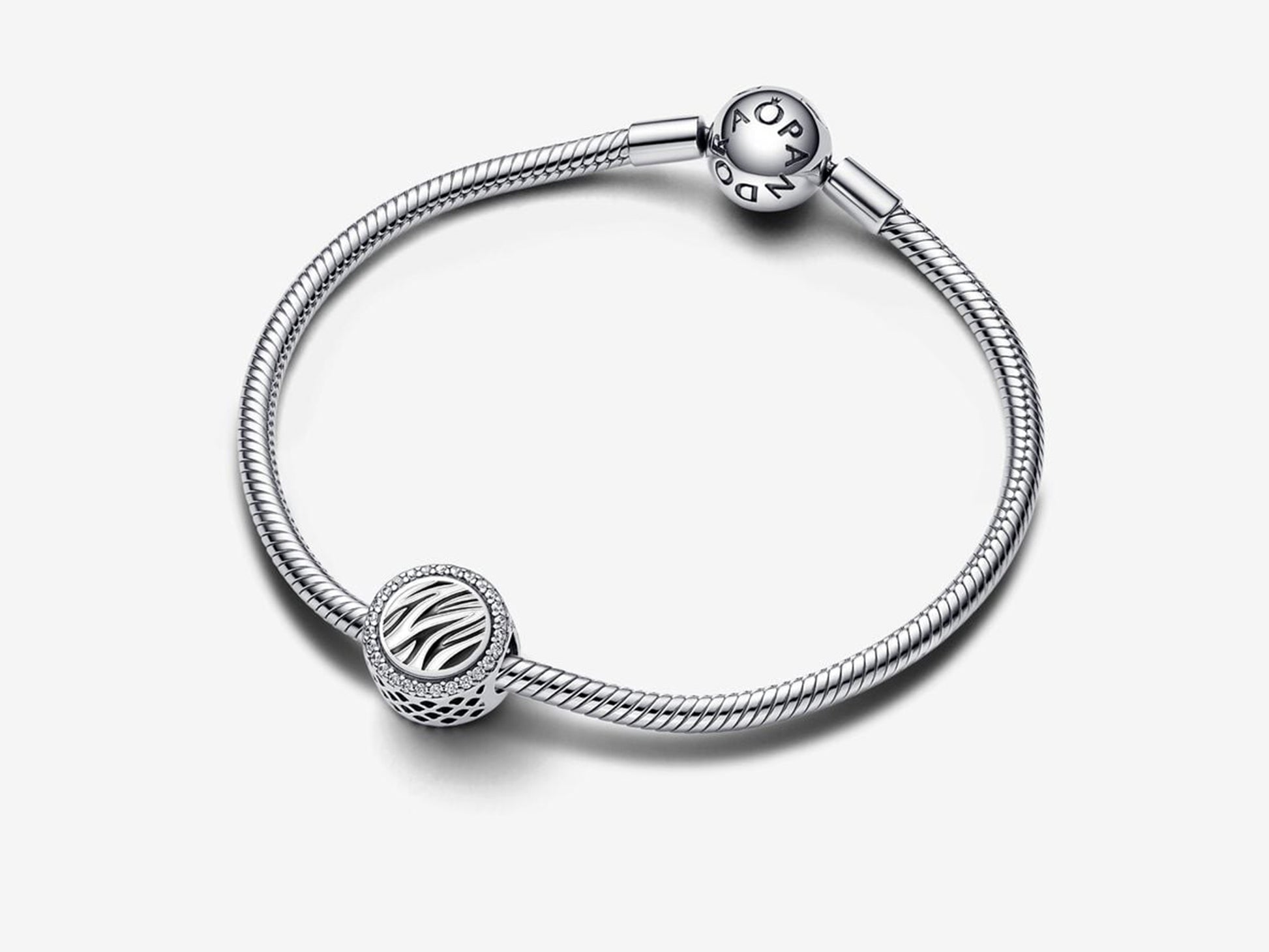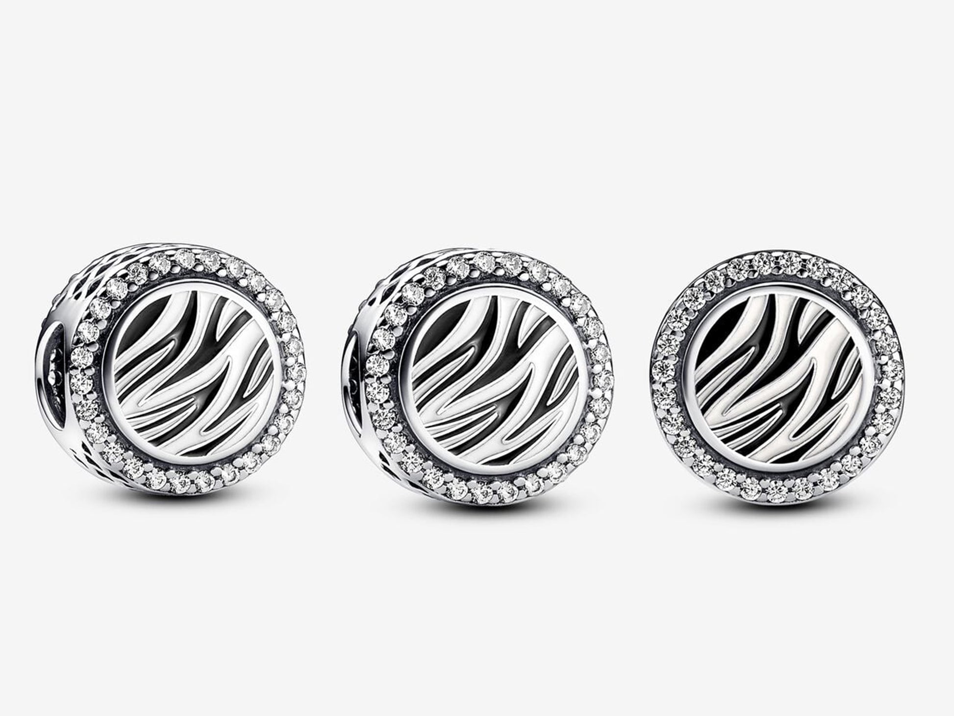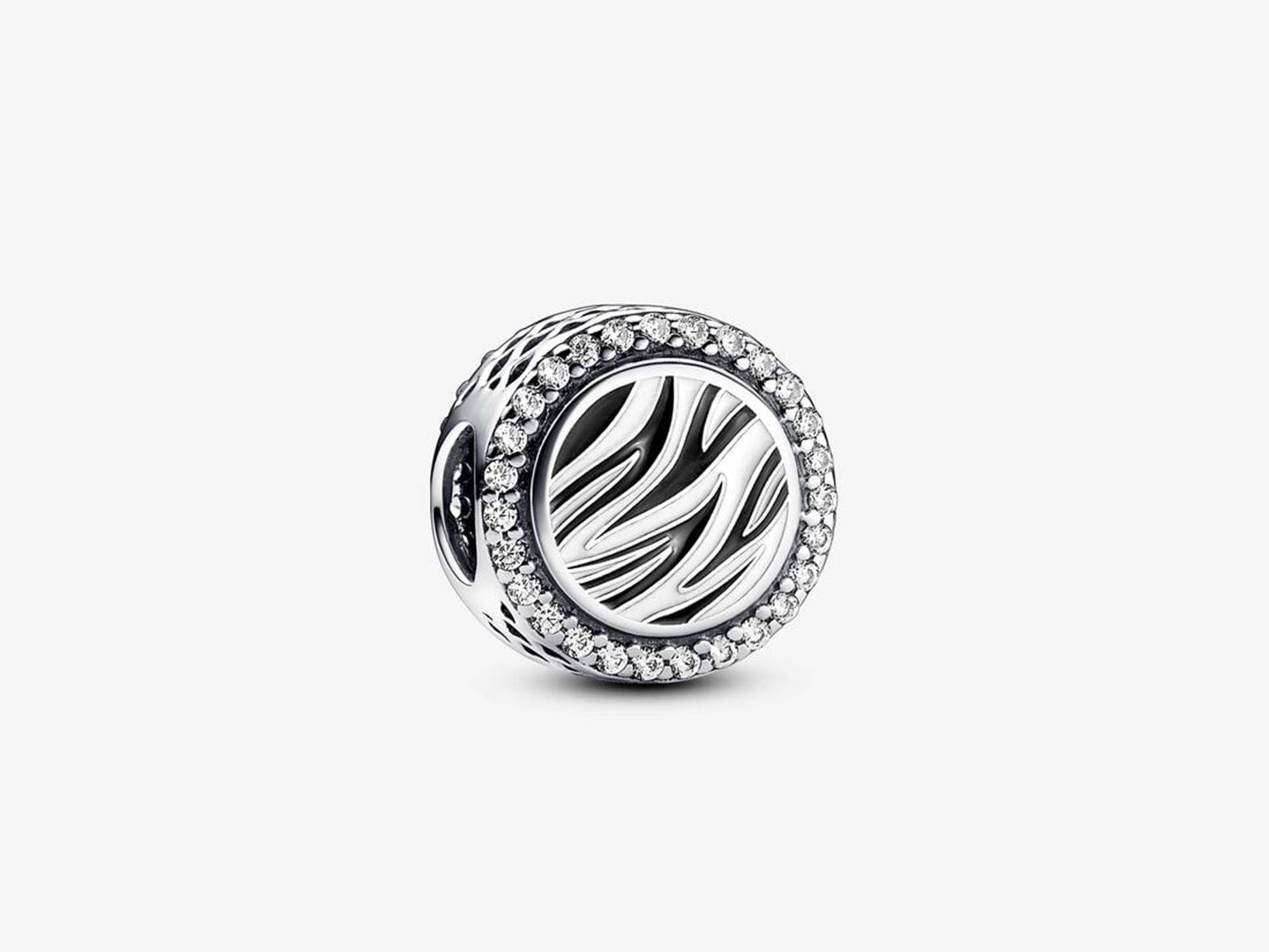 Indulge in the allure of the wild with our Zebra Print Charm for Pandora Bracelet. This circular charm features the distinctive zebra pattern on both sides, accented with pavé-set cubic zirconia along the edges and a captivating rhombus cutout design on the sides. Inspired by the mesmerizing beauty of zebra stripes found in nature, this charm brings a touch of the safari to your collection.